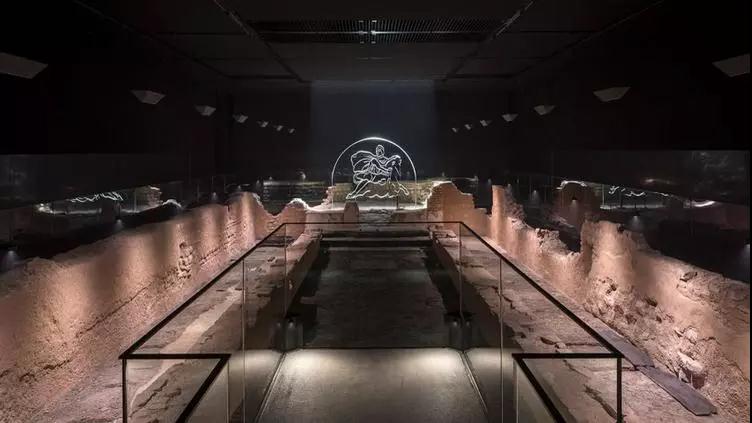 這座博物館很酷,它位于地下,改建自羅馬神廟遺跡。