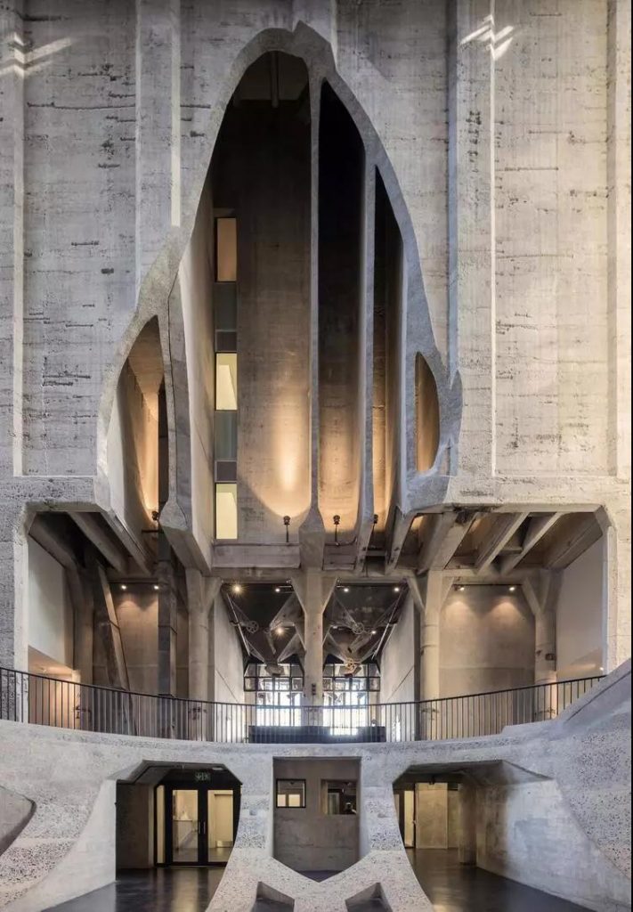 它建于 1921 年,是一座混凝土澆筑的谷倉(cāng),分為底下的存儲(chǔ)空間和上半部分的電梯塔,總體高 57 米,六層以下的部分現(xiàn)在是非洲當(dāng)代藝術(shù)博物館 Zeitz MOCAA,它在去年九月正式開放。