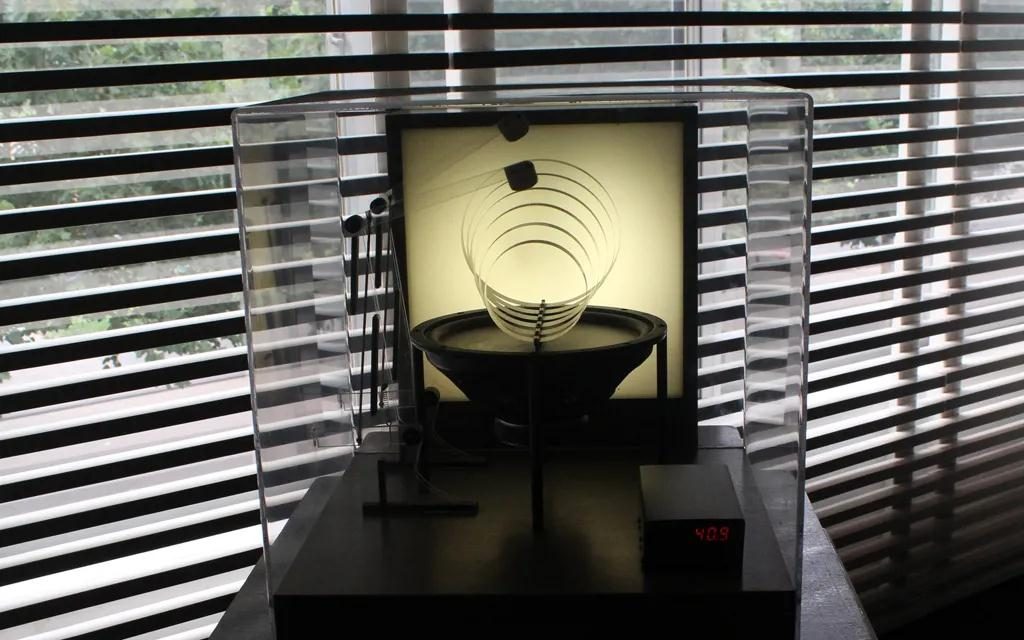 撥動吉他弦,同時轉(zhuǎn)動旋轉(zhuǎn)鼓,可以看到波紋的形狀,隨著音調(diào)的變化,波紋也會有所不同。