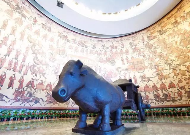 進(jìn)入大同博物館后,首先引起您注意的是大型壁畫-北魏的旅游地圖。高約15.5米,寬約50米。內(nèi)容是根據(jù)大同市沙嶺村北魏壁畫墓的“旅游地圖”,繪制的北魏貴族旅游場景。