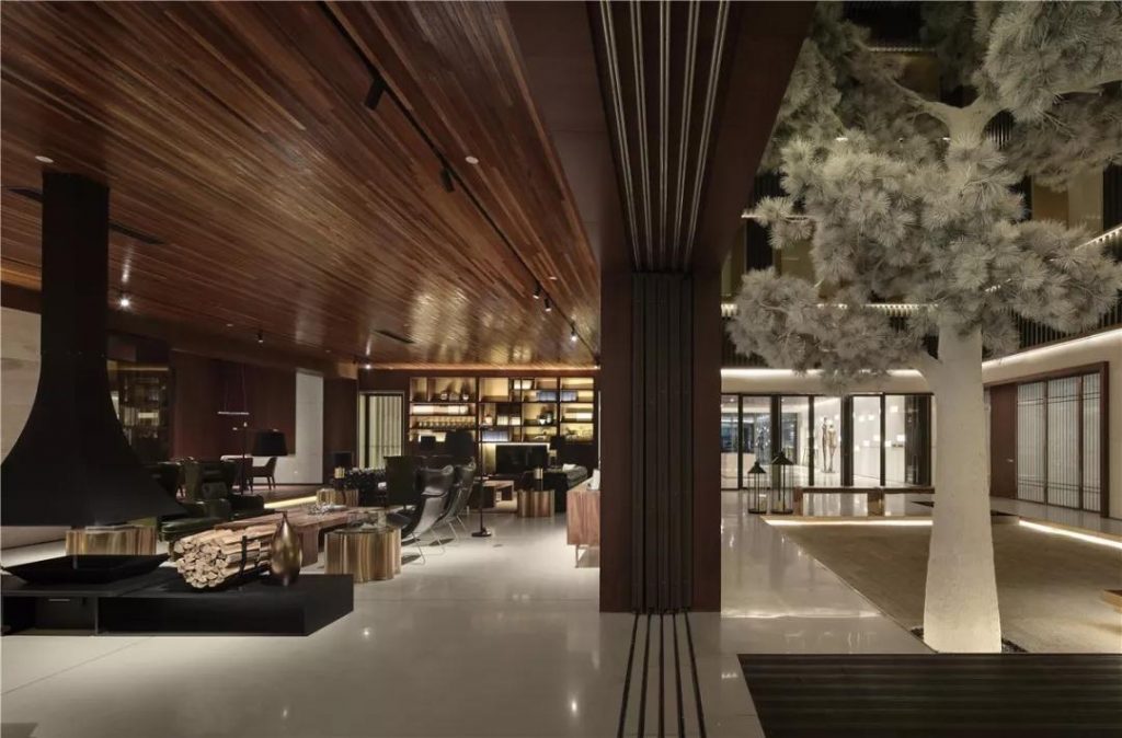 整體照明設(shè)計(jì)在展廳營(yíng)造出低調(diào)而隱蔽的氛圍,而公共區(qū)域照明則使用隱蔽的光源。反射照明或遮光照明柔和清潔,讓客人看到光與建筑的完美自然融合。大型玻璃門和玻璃窗使空間更加透明,您可以在窗外看到庭院,花壇和噴泉。輕松舒適。展廳中的現(xiàn)代家具和簡(jiǎn)潔的擺放位置使寬敞空間中的小細(xì)節(jié)令人耳目一新。