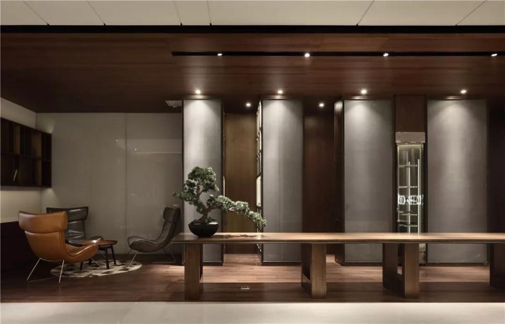 簡(jiǎn)潔是這個(gè)展廳最重要的部分。展廳面積很大,包括會(huì)議室,休閑室,體驗(yàn)室,談判室等。我們想在寬敞的空間中表達(dá)細(xì)節(jié)的感覺。展館的室內(nèi)裝飾采用暖灰色調(diào),材料主要是原木和水磨石。隨處可見綠色植物,營(yíng)造出低碳休閑的氛圍。通過庭院進(jìn)入展廳時(shí),您會(huì)看到一個(gè)漂浮的樹枝。當(dāng)水在其上方流動(dòng)時(shí),就像在山間小溪上行走一樣。展廳中間有一個(gè)螺旋形樓梯。該樓梯連接到二樓。