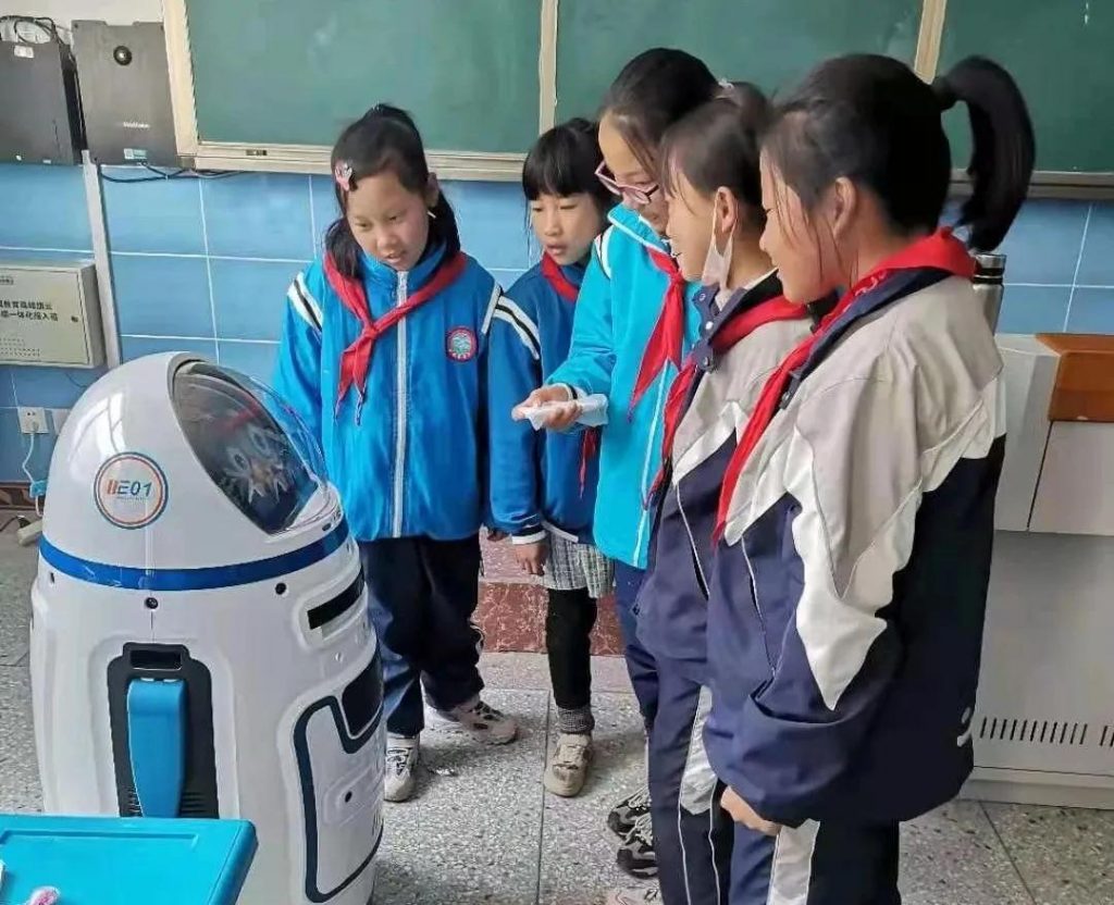 老師指導(dǎo)學(xué)生操作機(jī)器人和3D打印
