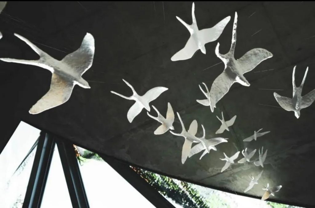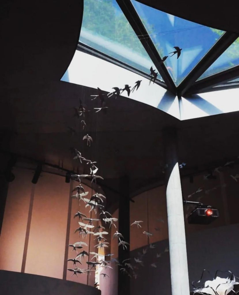 館內(nèi)裝置由丹麥剪紙藝術(shù)家Veronica Hodges純手工設(shè)計(jì)制作。以拇指姑娘的故事為靈感,以燕子為契機(jī),用翱翔的姿態(tài)表達(dá)了拇指姑娘對(duì)自由的向往。